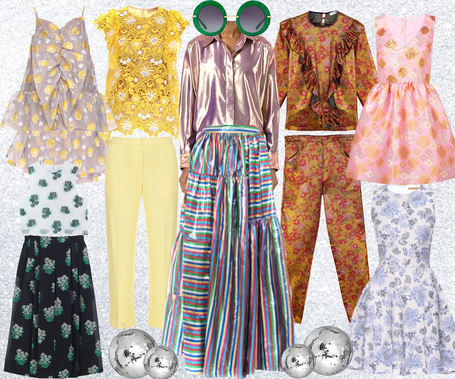 Feather Top - Pucci// Feather Skirt - Alice McCall// Feather Drop Earrings - Marte Frisnes// Peacock Clutch - Kate Spade// Teal Heels - Marco de Vicenzo// Horn Earrings - Katherine Cordero// Embroidered Crop Top - Josie Natori// Suede Pants - Theory// Calf Hair Clutch - Rebecca Minkoff// Bone Heels - Alexander McQueen// Pink Organza Flower Top - Bambah// Metallic Green Pants - Prada// Cactus Purse - Charming Charlie// Cactus Slides - Kate Spade// White Flower Earrings - Marni// Butterfly Dress - Yuliya Magdych// Butterfly Clutch - Nancy Gonzalez// Gold Mules - Loeffler Randall