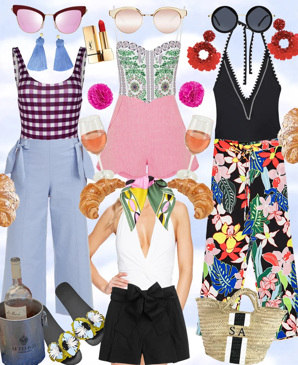 Tassel Earrings - Hart Hagerty// Garnet Cat Eye Glasses - Le Specs// Gingham Bathing Suit - Solid & Striped// Light Blue Culottes - Club Monaco// Flower Slides - Zara// Red Lipstick - YSL (Le Rouge)// Rose Mirrored Sunglasses - Le Specs// Bustier Bathing Suit - Tory Burch// Pink Flower Earrings - Kate Spade// Pink Shorts - Paper London// Scarf - Pucci// White Bathing Suit - Michael Kors// Black Shorts - J. Crew// Red Earrings - Ken Samudio// Black Round Sunglasses - Le Specs// Black Bathing Suit - Same Swim// Floral Pants - Zara// Monogram Straw Tote - Mariella Vilar